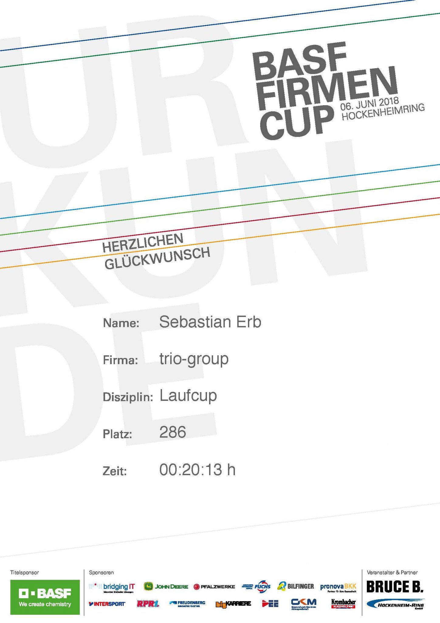 Urkunde BASF Firmencup 2018, Hockenheimring
