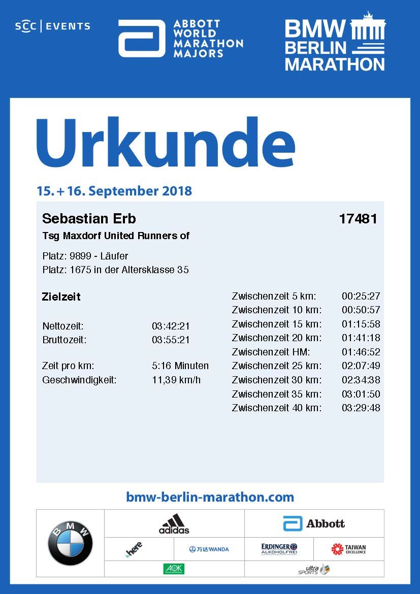 Urkunde Berlin Marathon 2018