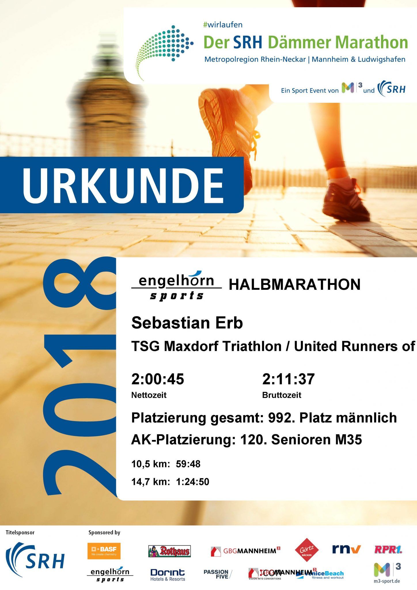 Urkunde SRH Dämmermarathon 2018 / Halbmarathon